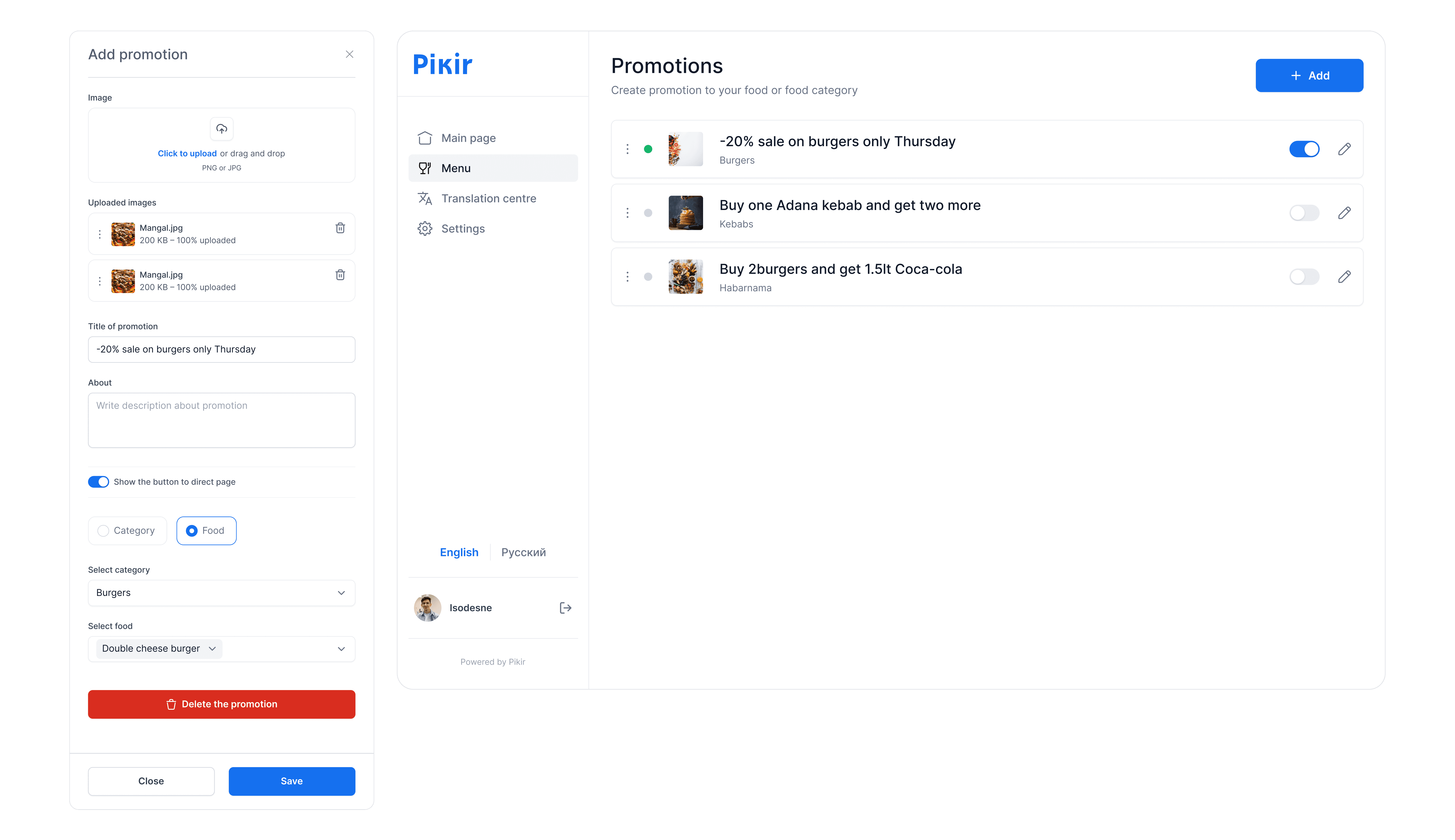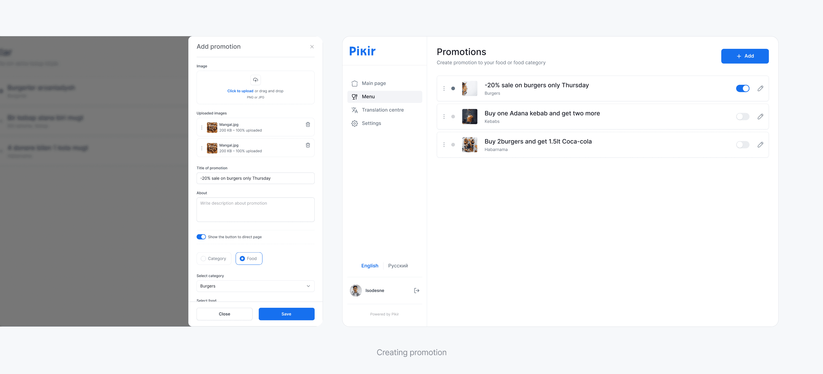 Creating a system where users could make their own menus was essential. We built this feature and integrated it into the Menu Dashboard, allowing managers to independently manage and customize their menus.